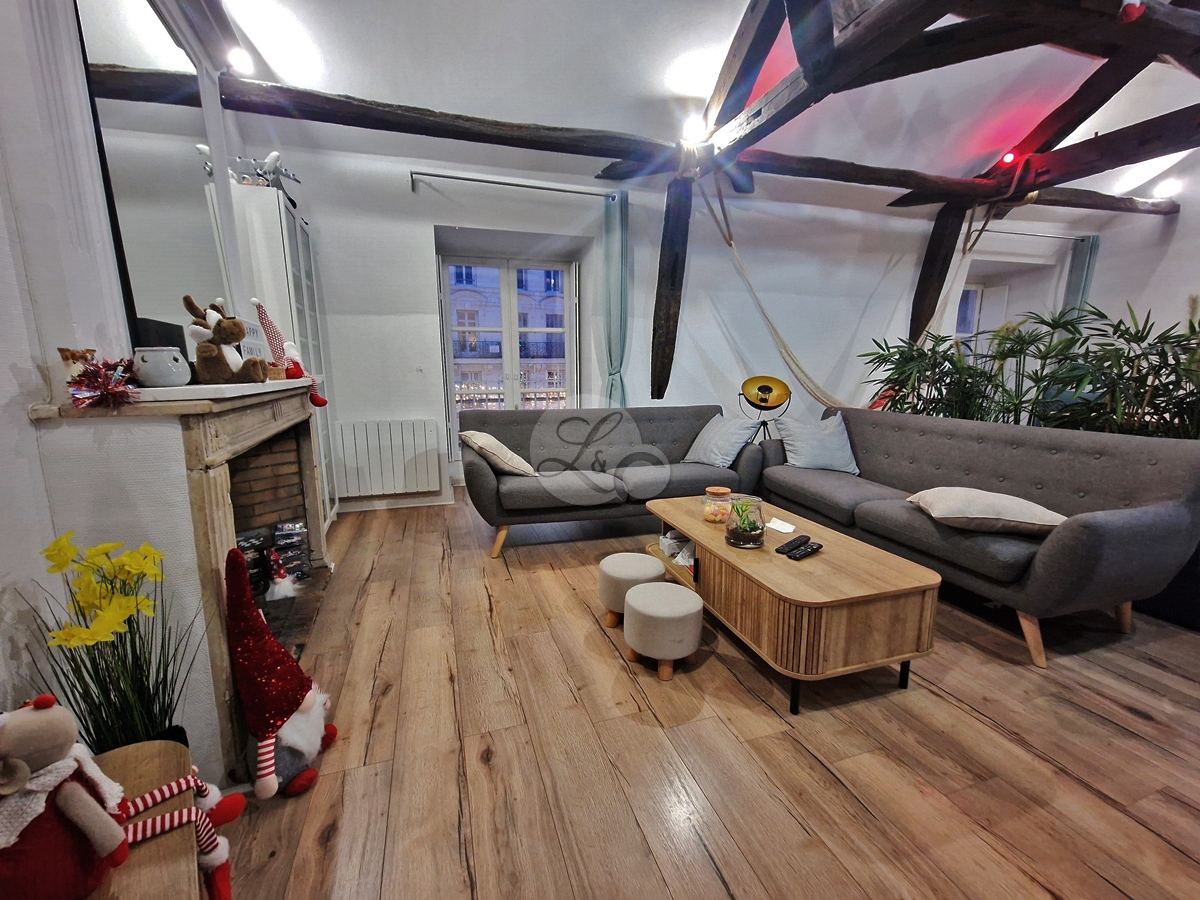 Au cœur du centre-ville de Blois, dans un immeuble de caractère datant des années 1750, ce duplex occupe le premier et dernier étage d’une petite copropriété.
