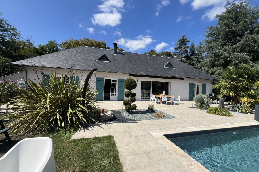 Au sud de BLOIS, Charmante maison contemporaine située sur un terrain arboré d’environ 3 800 m². Cette propriété récente allie confort, modernité et performance énergétique, avec un classement en catégorie A.