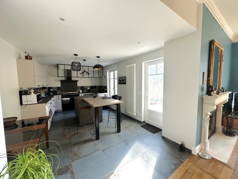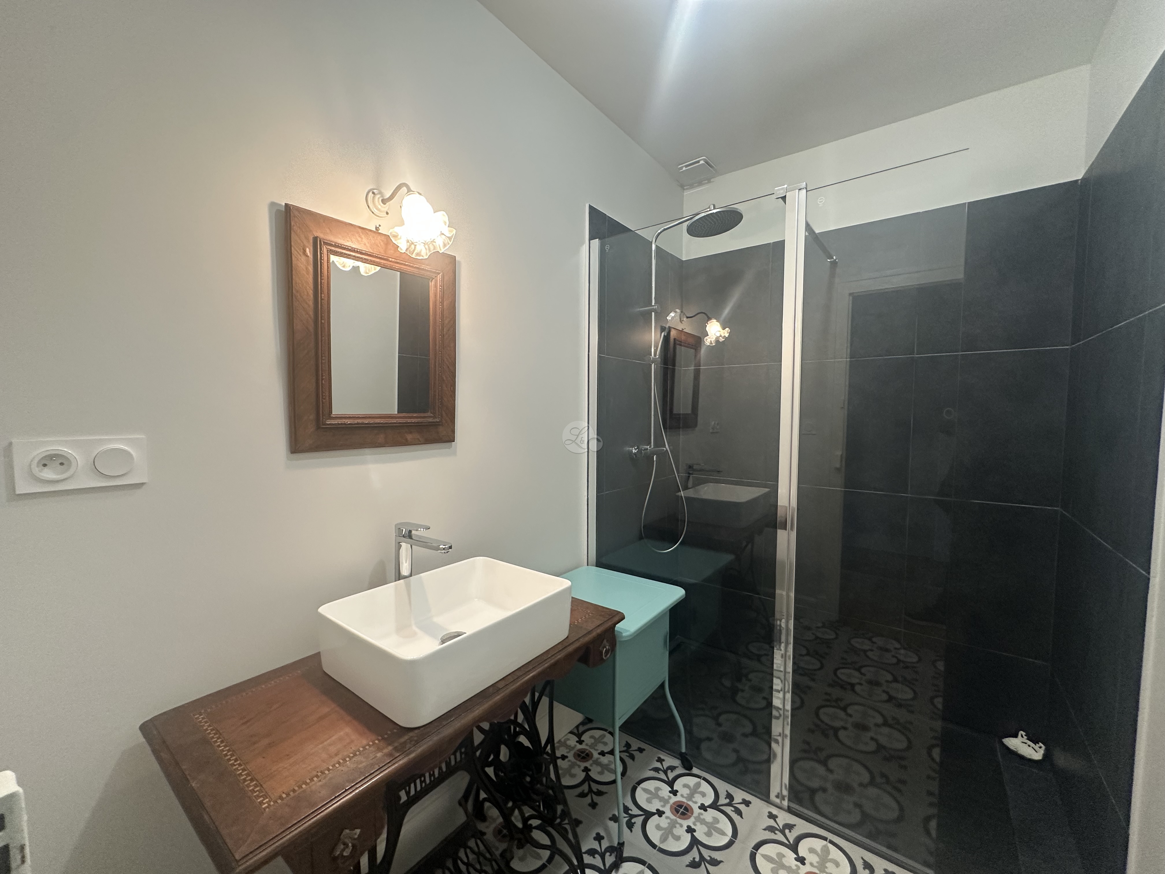 La rénovation particulièrement soignée met en valeur de superbes éléments d’origine — parquets anciens, boiseries, carreaux de ciment — associés à des finitions de grande qualité.