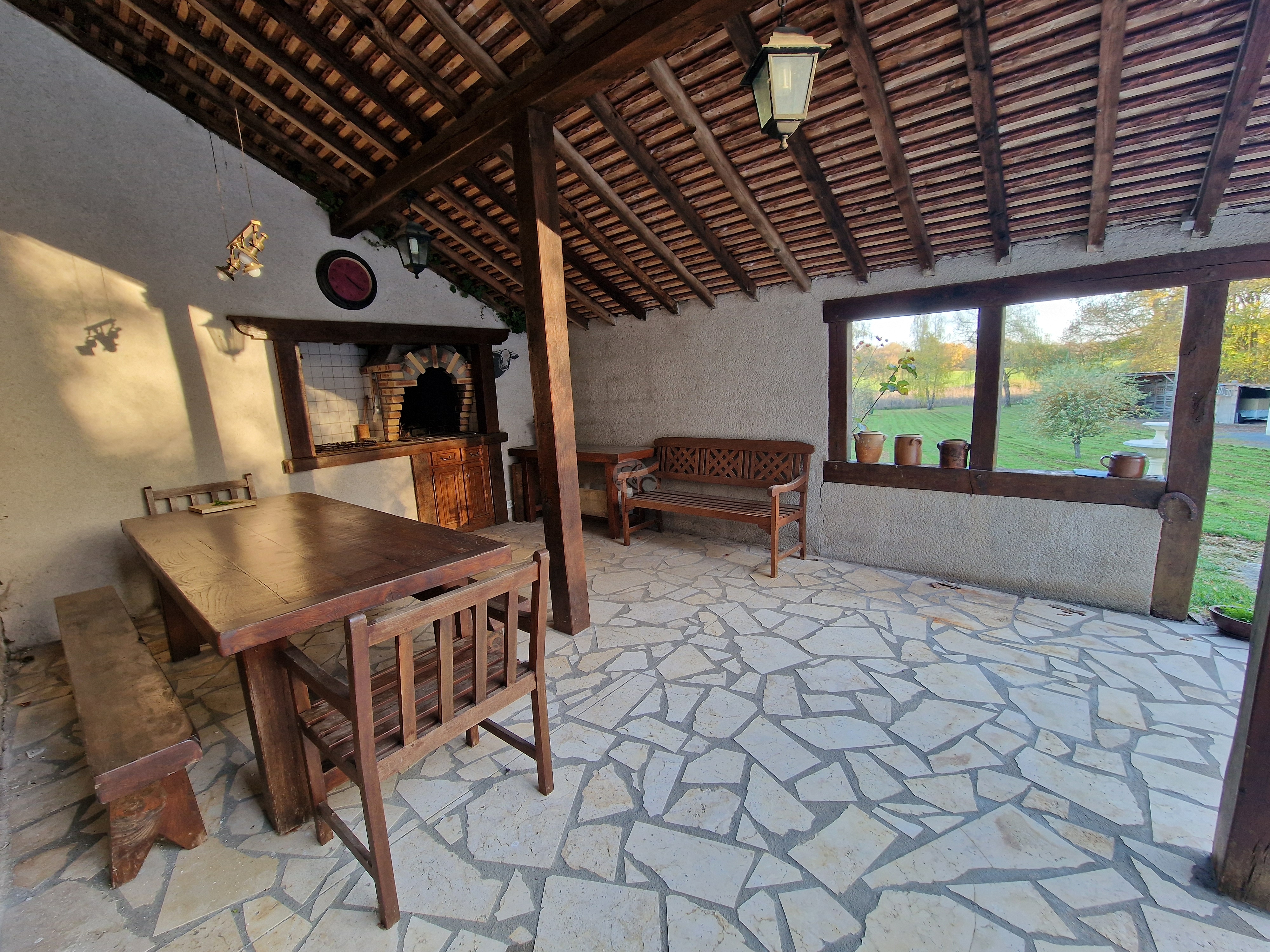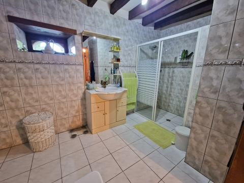 À l’extérieur, plusieurs espaces de stockage, deux garages, un abri pour camping-car et un petit appartement indépendant d’environ 19 m², équipé d’un évier, d’un WC et d’un chauffage, complètent l’ensemble. Le terrain d’environ 2 600 m² offre un cadre naturel et préservé.