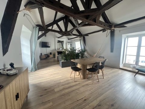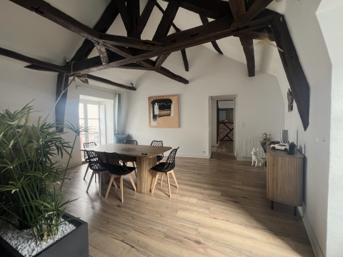 Au cœur du centre-ville de Blois, dans un immeuble de caractère datant des années 1750, ce duplex occupe le premier et dernier étage d’une petite copropriété.