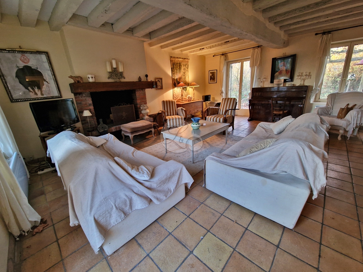 Séjour traversant avec cheminée à foyer ouvert (env 40m²),