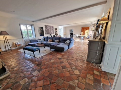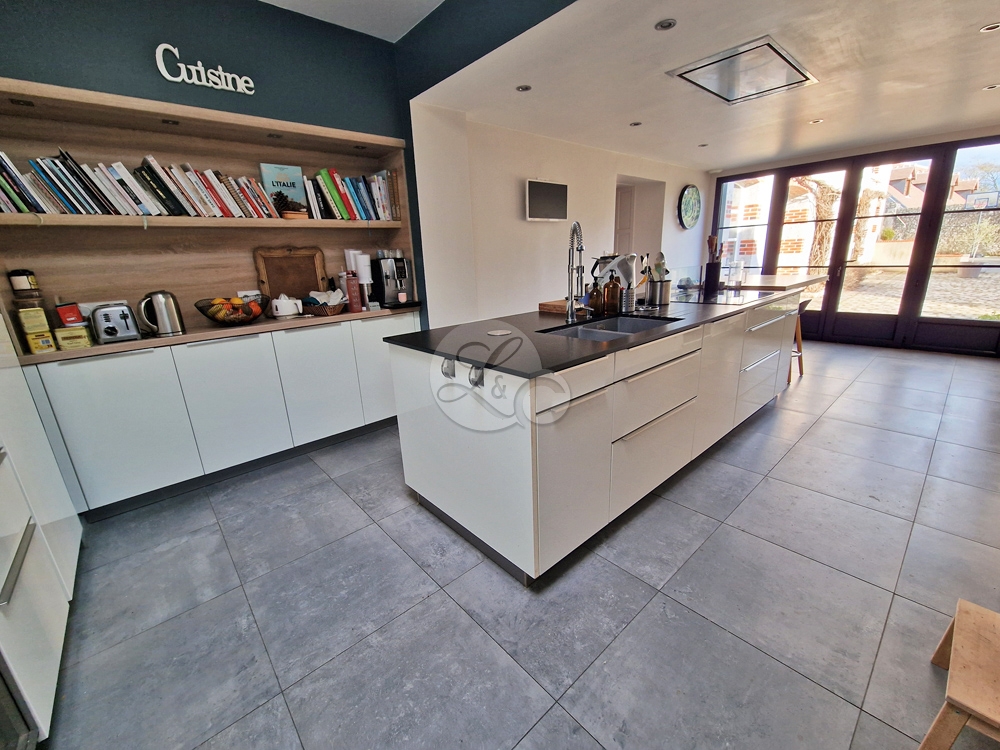 Dès l’entrée, une vaste pièce d’accueil d’environ 35m² donne le ton et mène à une superbe pièce de vie de 85m² baignée d'une lumière traversante et disposant d'une imposante cheminée idéale pour des moments de repos ou de convivialité. La cuisine aménagée et équipée, ouverte sur le jardin grâce à une large baie vitrée, est prolongée d’une vaste lingerie, idéale comme espace fonctionnel et pratique au quotidien.