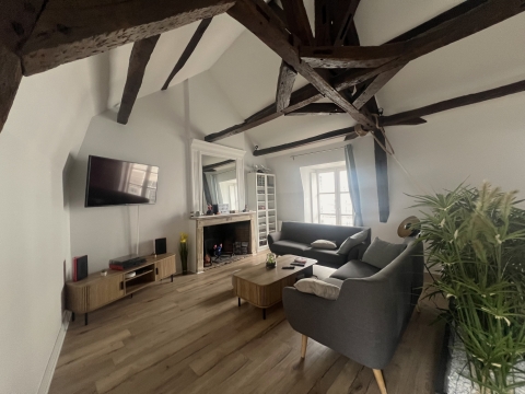Au cœur du centre-ville de Blois, dans un immeuble de caractère datant des années 1750, ce duplex occupe le premier et dernier étage d’une petite copropriété.