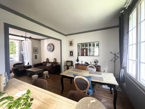 Séjour salon avec parquet massif, bow-window (32m² env)