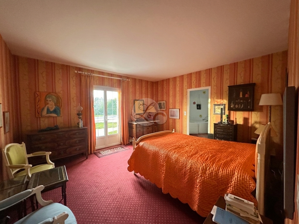 Elle se compose d'une entrée avec cheminée et salon donnant sur une cuisine aménagée et équipée et d'un séjour avec accès sur le parc. Elle dispose de 4 chambres dont une en rez-de-chaussée avec sa salle de bains et douche privative. L'étage se compose d'un palier, de trois chambres dont une traversante, complété par une salle de bains et une salle d'eau.